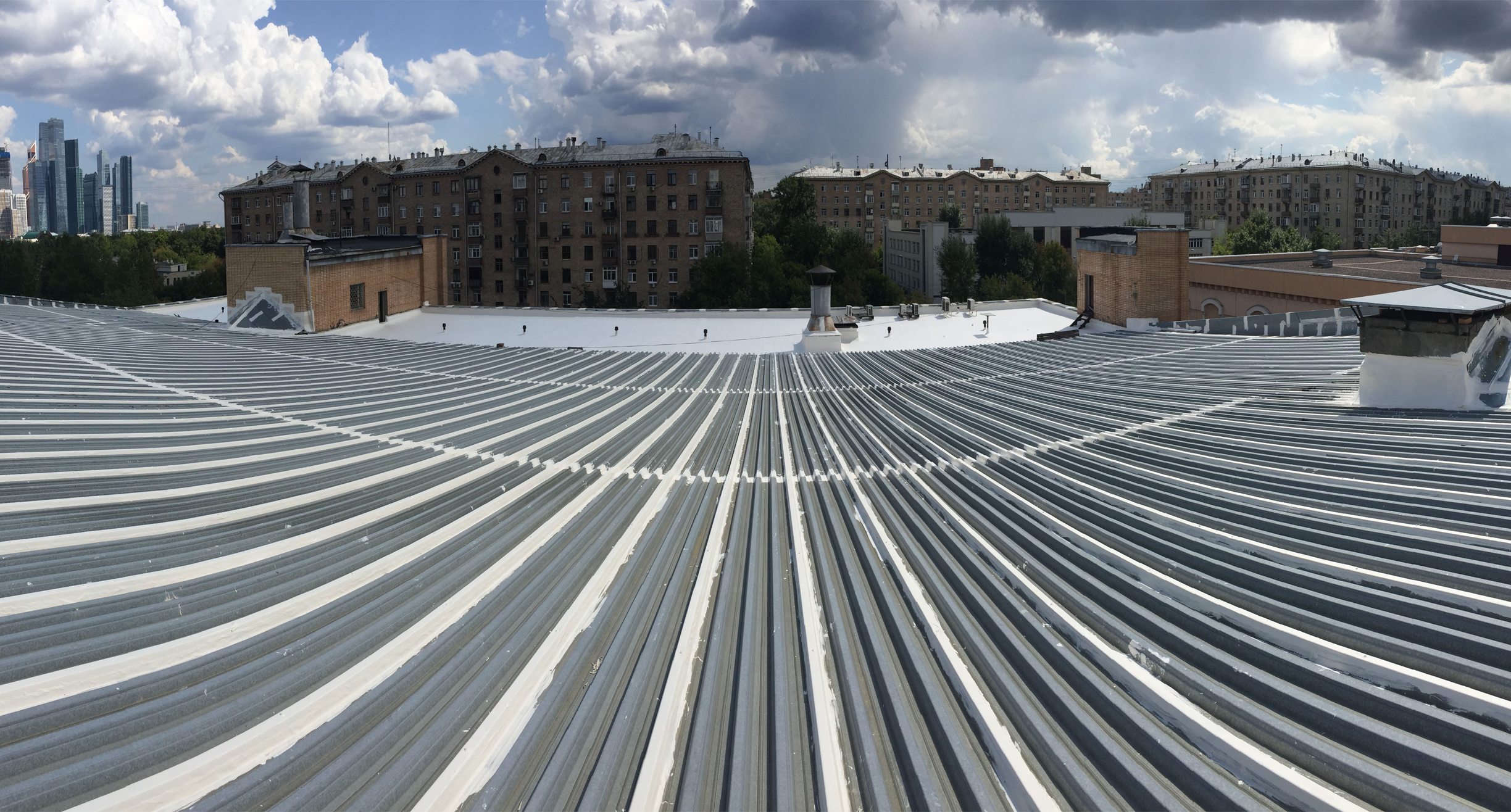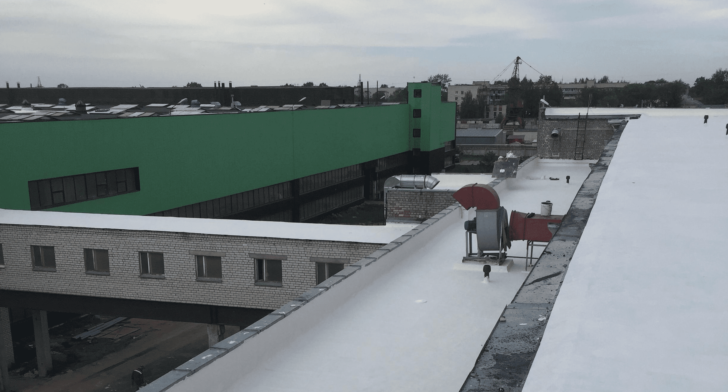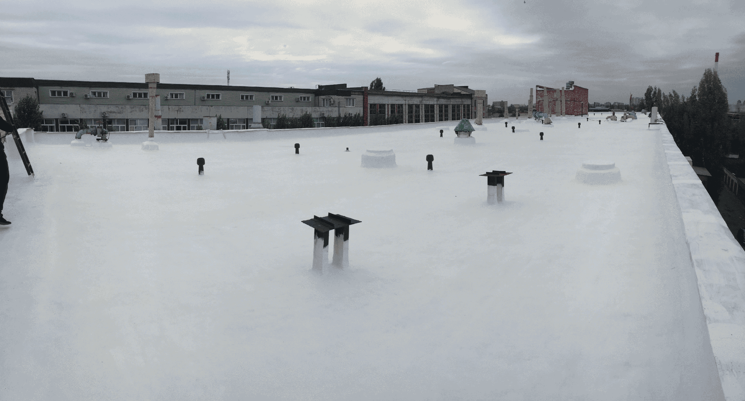 Мембрана повторяет рельеф кровли и вертикальные примыкания. Отсутствие швов в сотни раз снижает вероятность протечки.