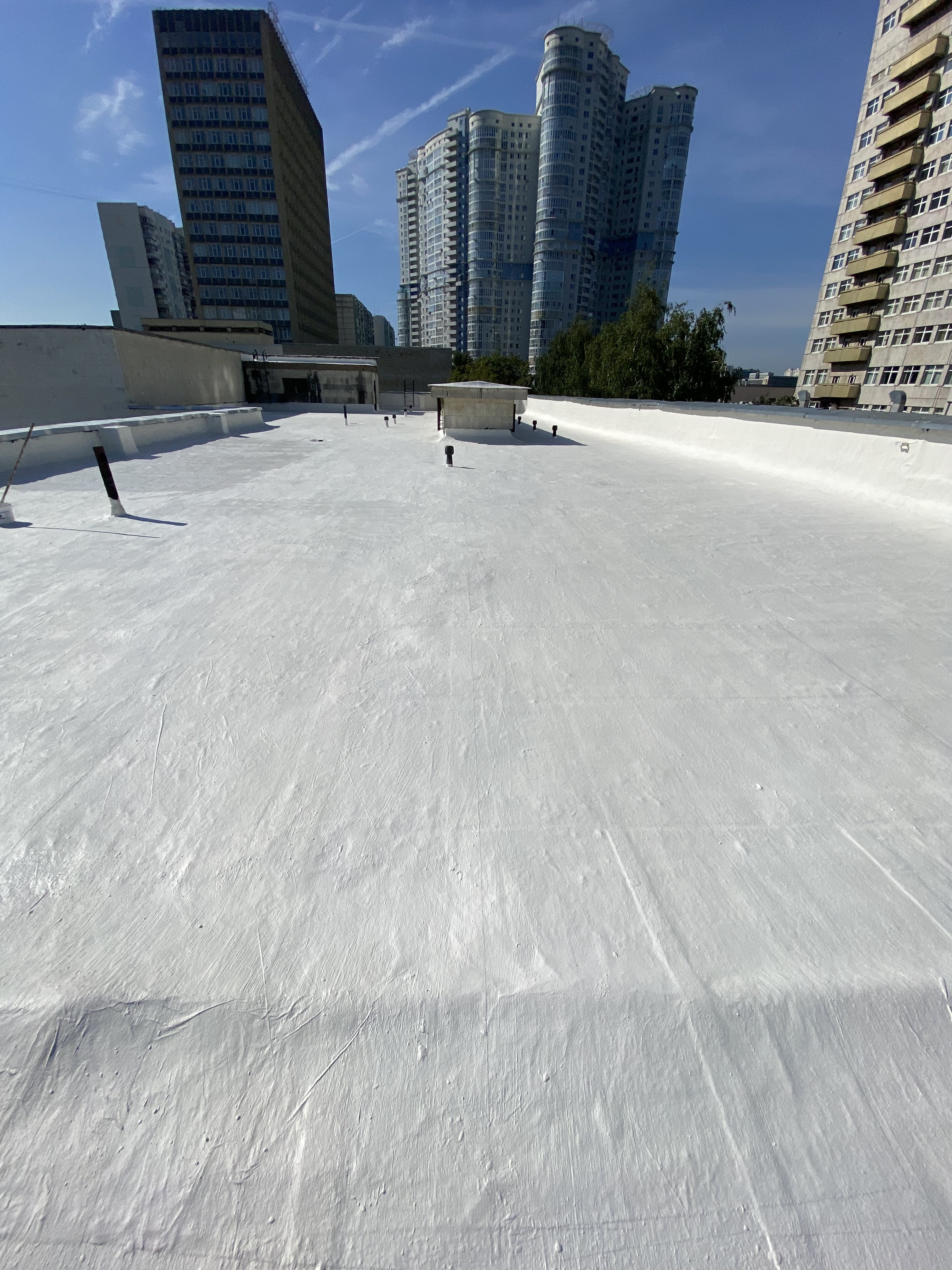 Мембрана повторяет рельеф кровли и вертикальные примыкания. Отсутствие швов в сотни раз снижает вероятность протечки.